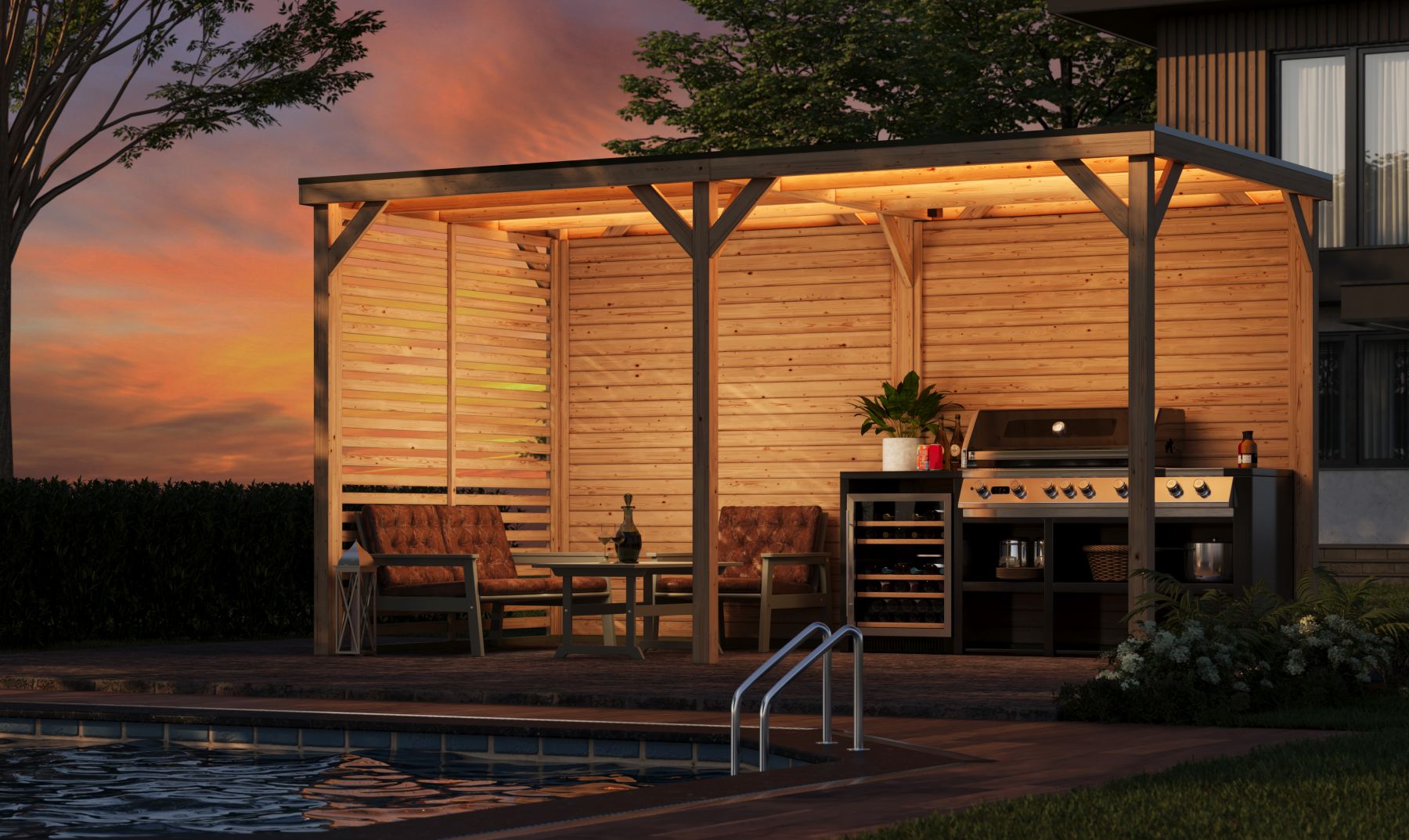 Karibu WM Pavillon Außenküche L, mit Verlängerung, inkl. 3x 5m LED RGB Streifen